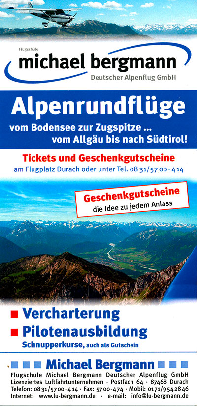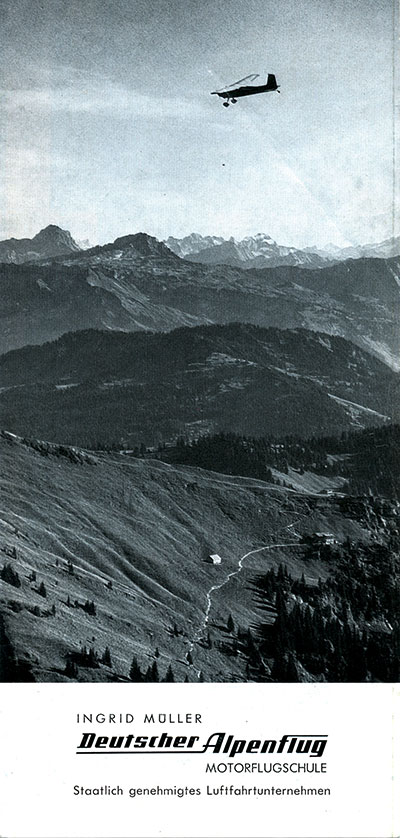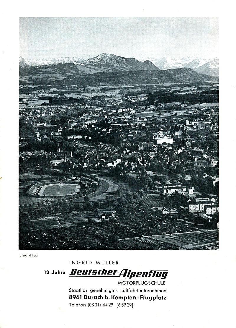 Im selben Jahrzehnt gründet auf dem Flugplatz Kempten-Durach eine junge Pilotin, Ingrid Müller, ein staatliches Rundflugunternehmen, den Deutschen Alpenflug.